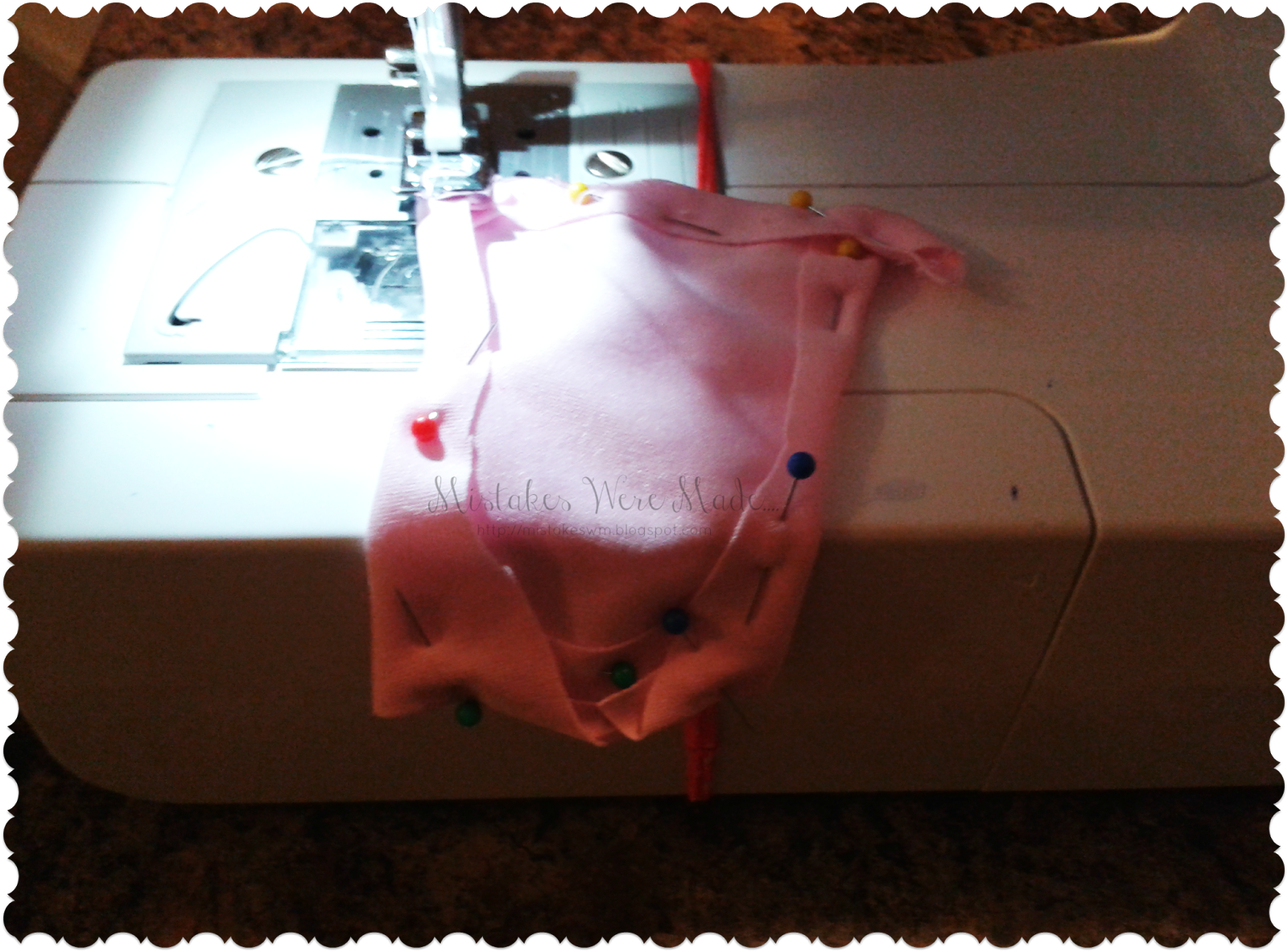15.Take your knickers lining (smallest piece) and sew all the way around.Do a better job pinning it unlike me..lol also make sure you take the pins out as you sew, otherwise it will ruin your sewing machine.